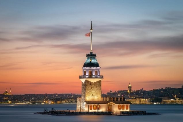 Далее снова на пароме по воде отправимся в Ускюдар, к знаменитой Девичьей башне, где особенно красиво на закате. Здесь пройдёмся по набережной и посетим музей султанш, а также уютную библиотеку-кафе.