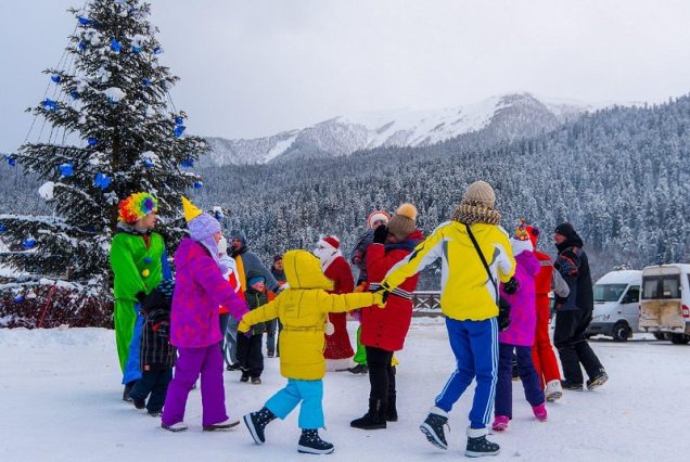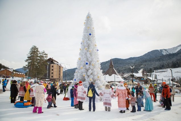 Представьте себе… Белоснежные вершины вокруг, свежий воздух, звёзды над головой и искрящаяся ёлка, украшенная огоньками. Горнолыжные трассы приглашают скатиться с ветерком, а тёплый плед и кружка горячего чая ожидают после активного дня.