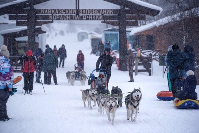 Кавказский заповедник предлагает своим гостям забаву - каюринг, или катание на собачьих упряжках по плато Лаго-Наки!